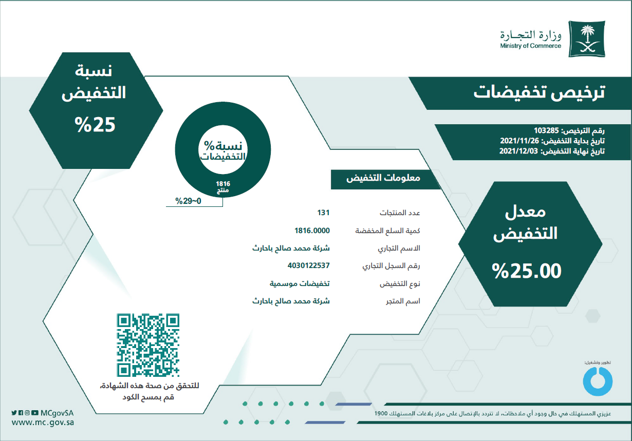 Discounts authorization certificate